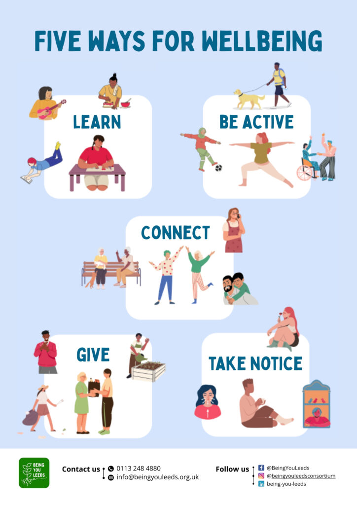 Everything Being You Leeds does links to the Five Ways to Wellbeing — simple, practical steps that help people feel better and stay well for longer.